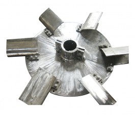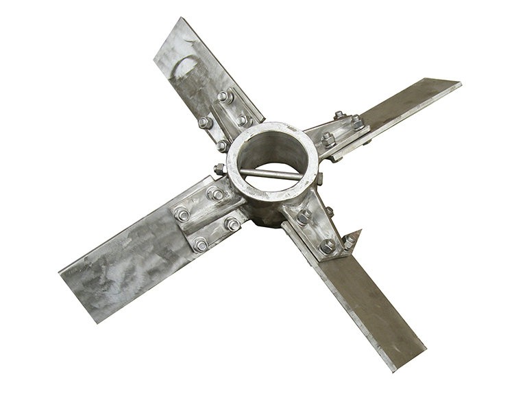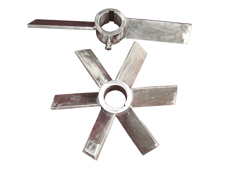 開啟渦式攪拌器多是將葉片直接焊接于輪轂上,折葉開啟渦輪攪拌器的葉片在焊接時,通常是在輪轂上開槽,葉片嵌入后施焊。小型開啟渦輪攪拌器也有整體鑄造的,特別是折葉的,如大量生產,用鑄造的比焊接的更為方便。對于大直徑的開啟渦輪,也可將全部葉片或徑向對稱的一對做成與輪轂可拆連接的,以便于安裝。