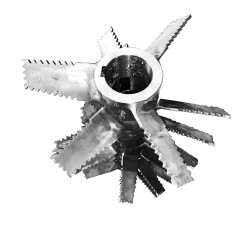 彎曲葉徑向流渦輪的葉片是用鋼板彎曲制成的,有些場合用壓扁的圓管來制作成彎曲型葉片,并且為了能使葉輪能貼近罐底的封頭安裝,將葉片略向上翹(上翹角約15°左右),葉片有二葉、三葉和四葉的,其中以三葉的用的多,且往往葉片的傾角不是90而是75°~80°,習慣上常將此類葉輪稱為后掠式葉輪,因為它是法武都拉公司開發的,它常與指形擋板配合用于混合、傳熱、懸浮、氣體吸收和乳化。三葉后掠式葉輪還常用于搪玻璃攪拌釜中。