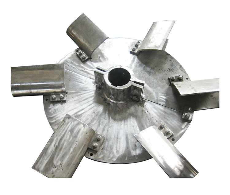 渦輪攪拌器分為圓盤渦輪攪拌器和開啟渦輪攪拌器;按照葉輪又可分為平直葉和斜片葉。渦輪攪拌器速度較大,一般為300~600r/min。渦輪攪拌器的主要優點是當能量消耗不大時,攪拌效率較高,攪拌產生很強的徑向流。因此它適用于乳濁液、懸浮液等。